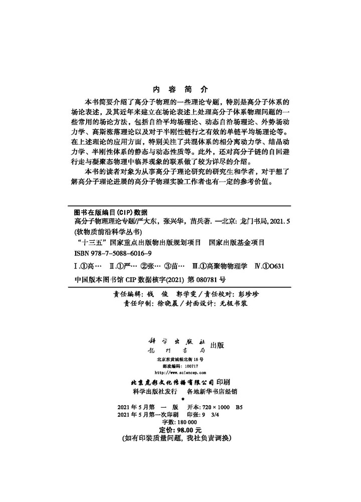 结晶动力学 静态与动态性质书籍KX 高分子物理理论专题 苗兵著 共混体系 张兴华 正版 严大东 半刚性体系 相分离动力学 书