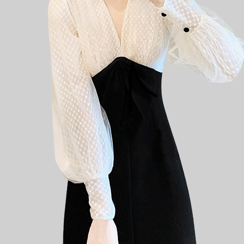新款 显瘦连衣裙女2025秋季 气质百搭开叉中长A字裙子 拼接长袖 时尚