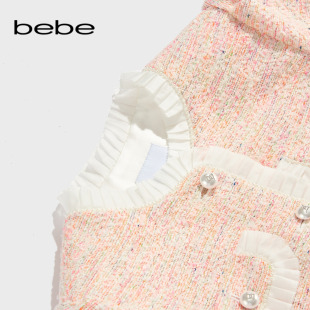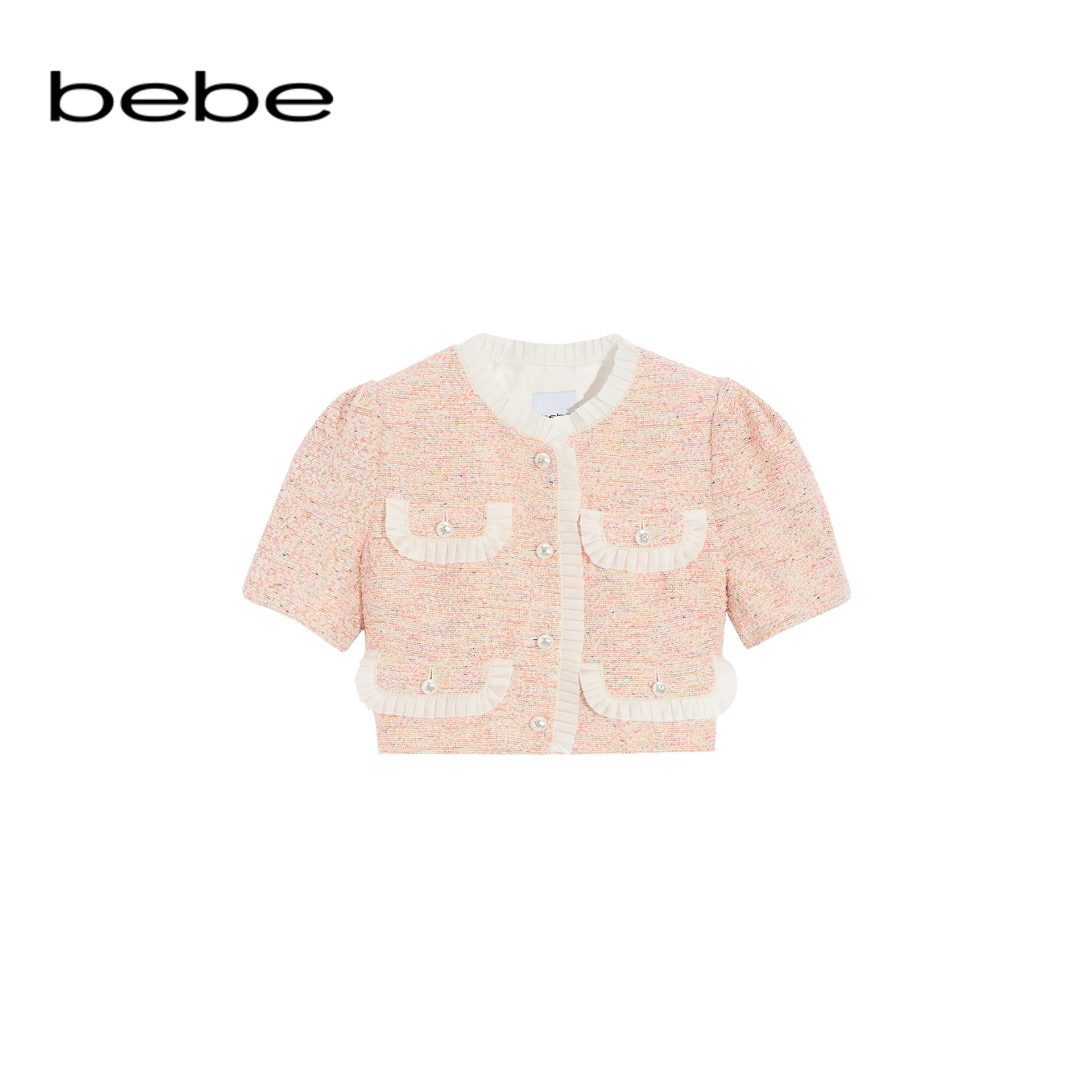 bebe春夏系列女直筒泡泡袖 百褶花边粗花呢短外套240304