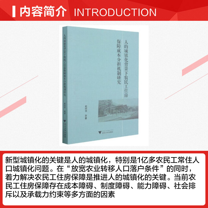 浙江大学出版 赵振宇等著 社 正版 新华书店旗舰店文轩官网 人 书籍 城镇化背景下农民工住房保障成本分担机制研究