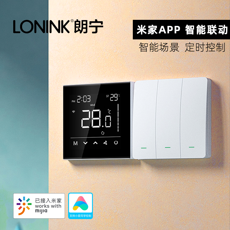 朗宁Mesh2.0空调地暖新风三合一旋钮智能控制面板温控器接入米家