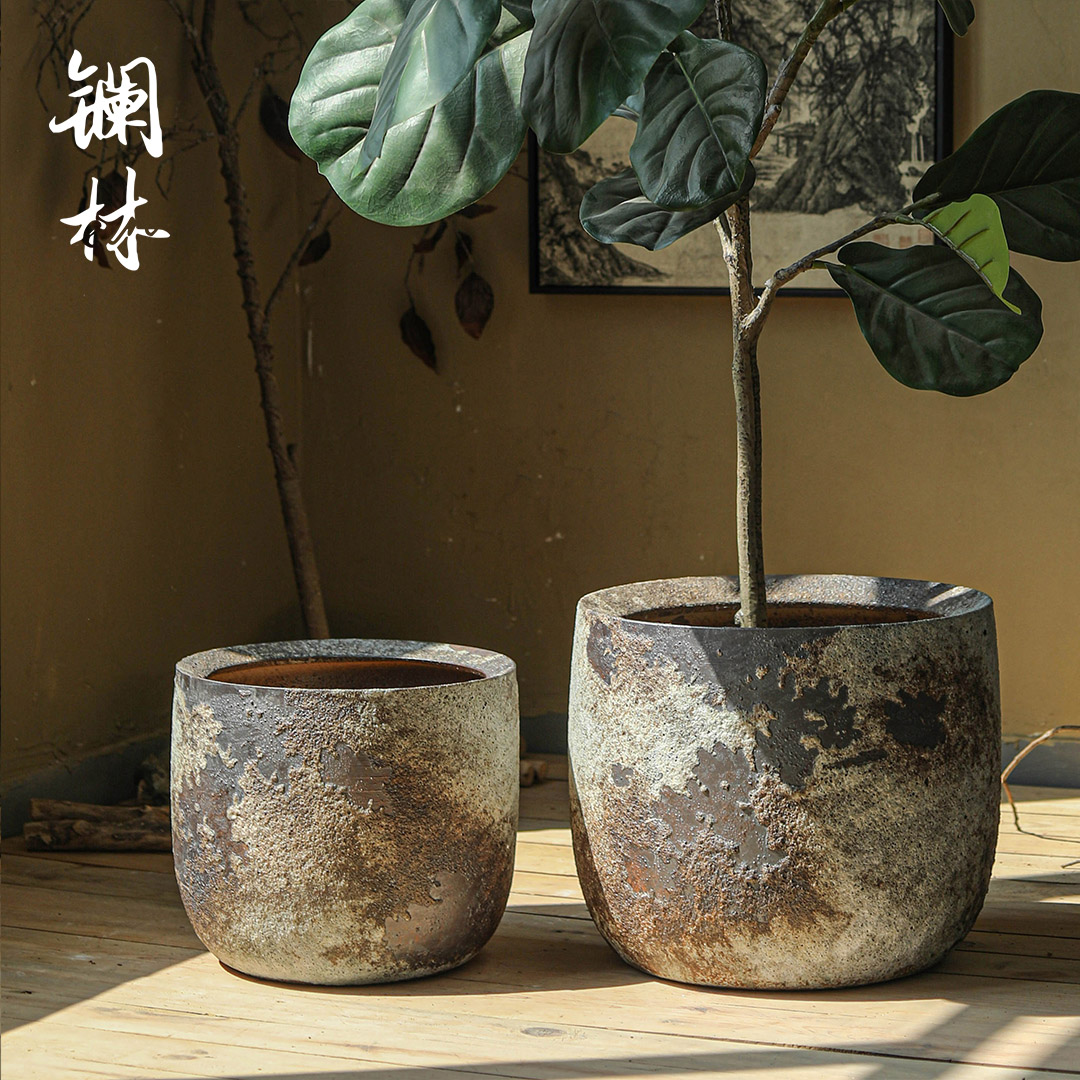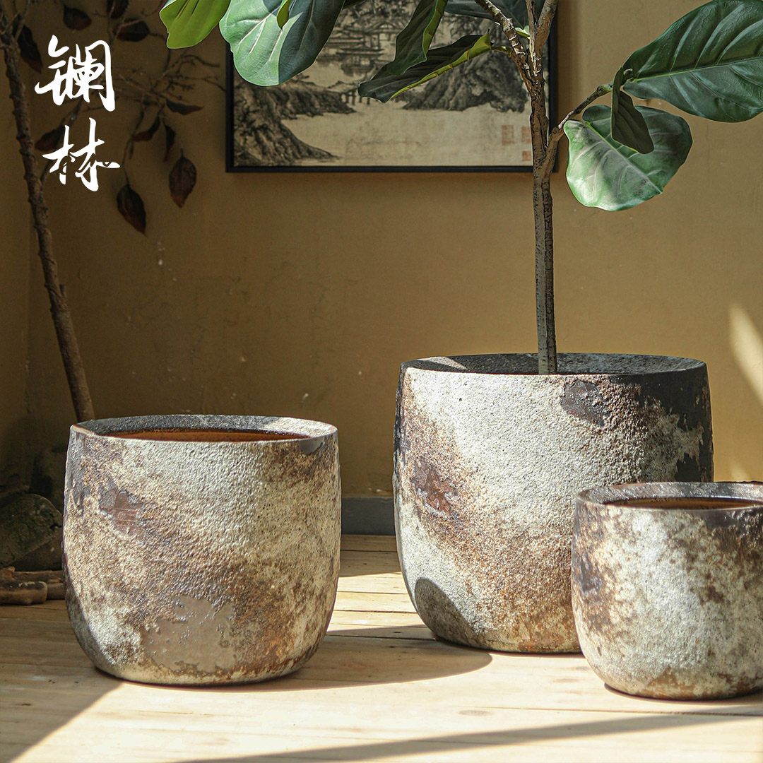 多肉花盆粗陶透气大陶瓷复古植物套装 清仓带托盘桌面 组合创意特价