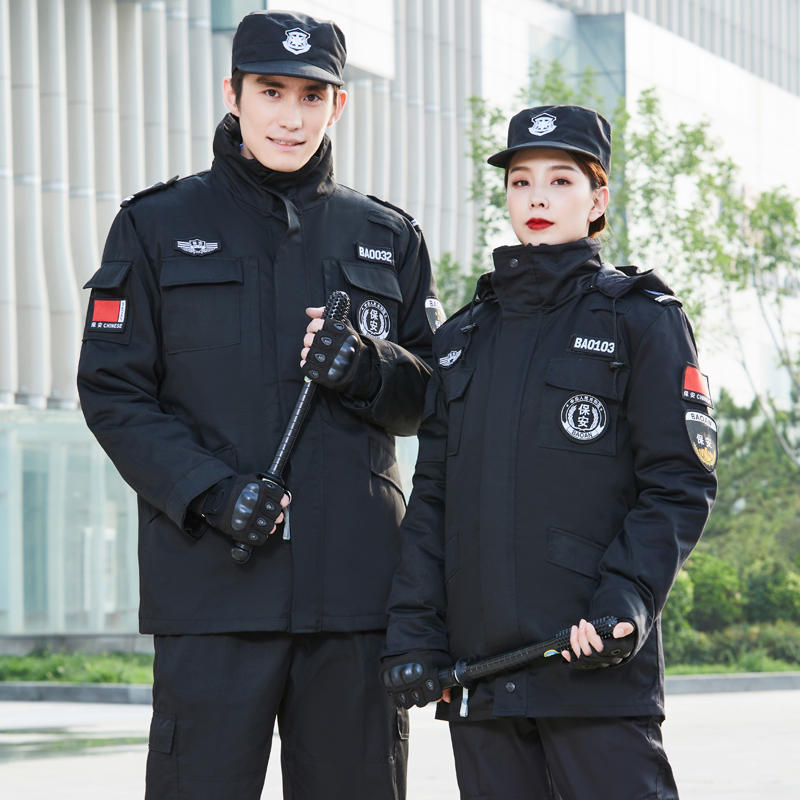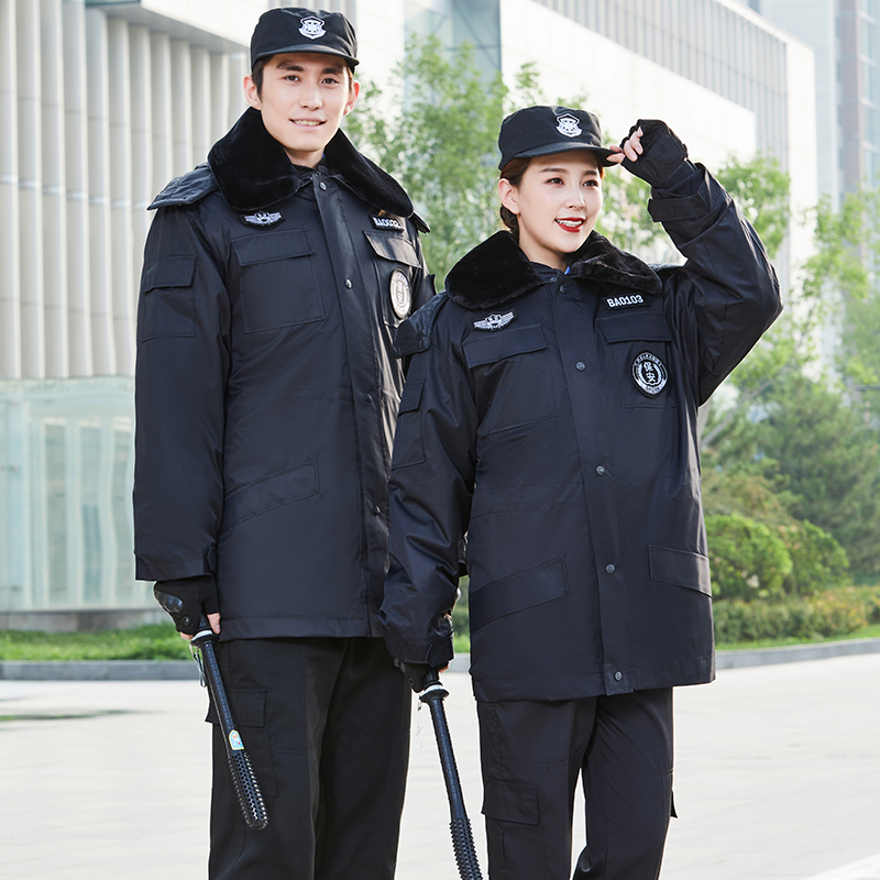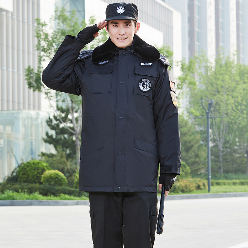 棉服中长款 服装 防寒服加厚棉衣安保 大衣男保安冬季 保安工作服冬装