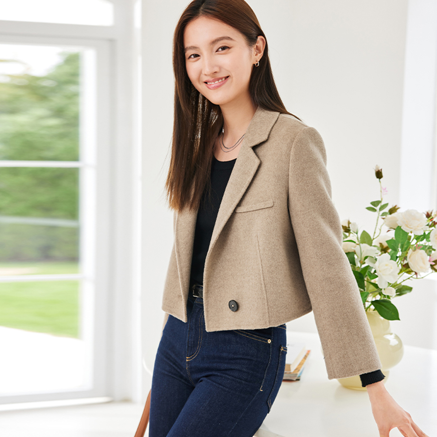 圆领大衣女小个子气质毛呢外套 高端羊毛双面呢短款 2025年春季 新款