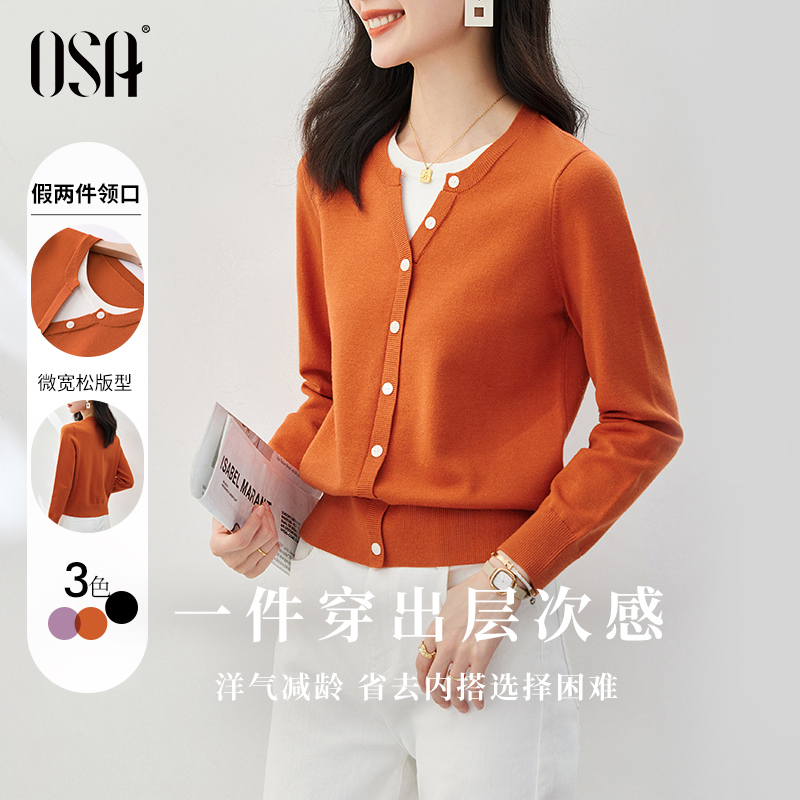 2025年新款 毛衣内搭打底上衣女秋装 针织衫 OSA欧莎紫色假两件短款