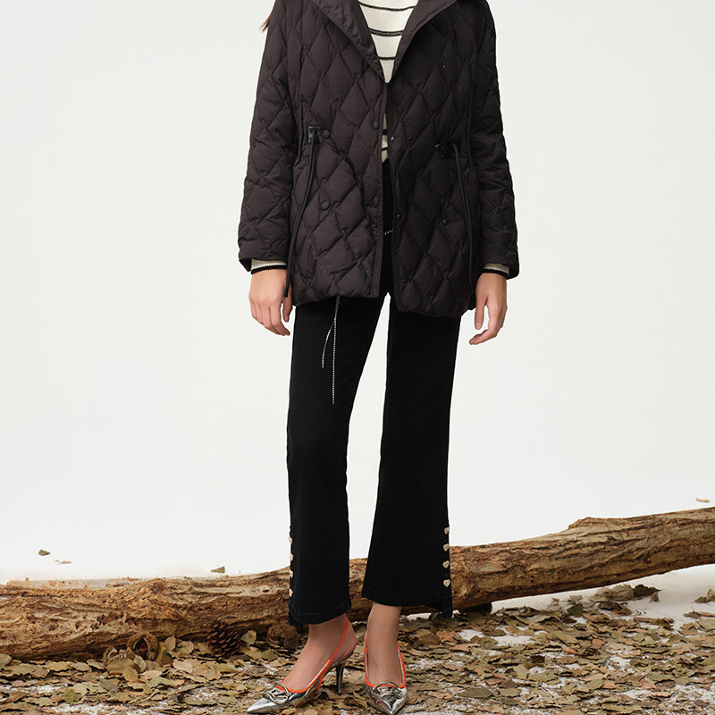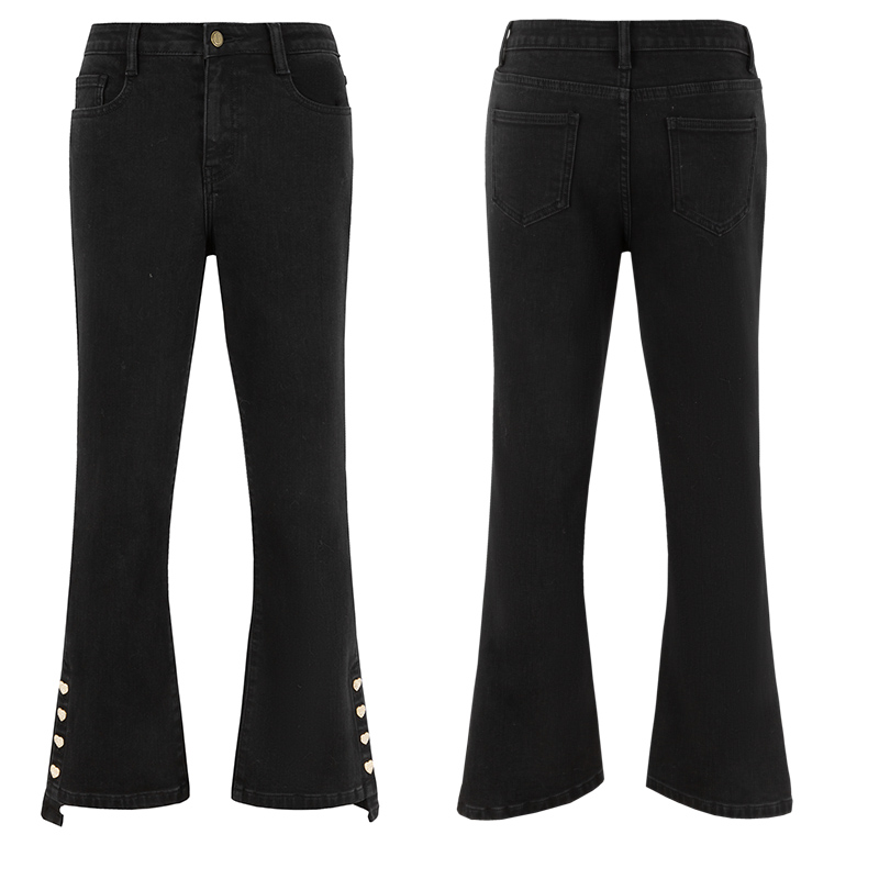 微喇高腰牛仔裤 黑色长裤 234009 新品 NOWSHOW朗香冬季