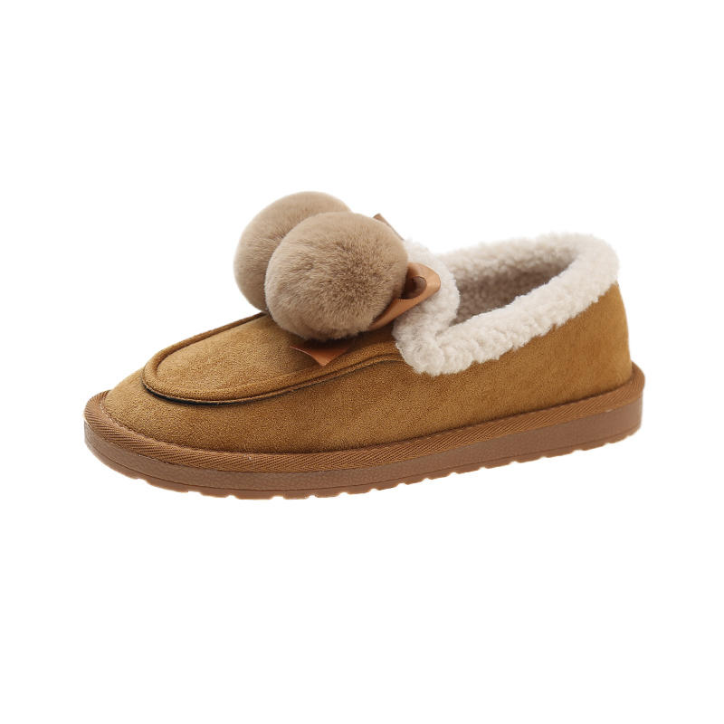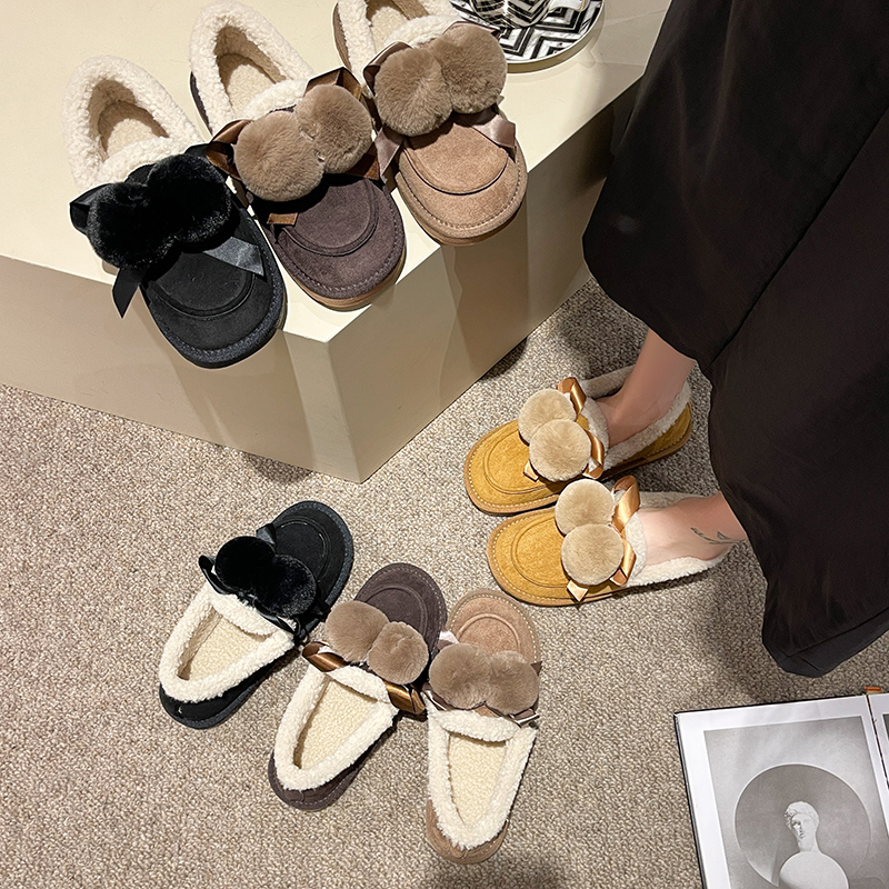 厚底毛毛球棉鞋 毛毛鞋 加绒保暖豆豆鞋 棉鞋 女外穿一脚蹬孕妇大码