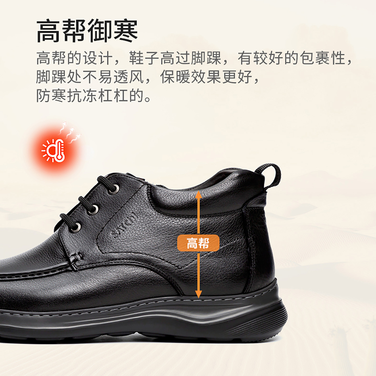 冬季 男士 加绒保暖防风牛皮高帮马丁靴雪地靴 旗舰店冬季 沙驰男鞋