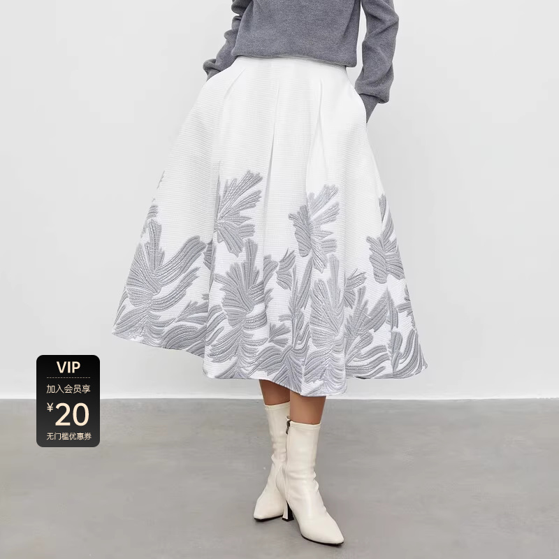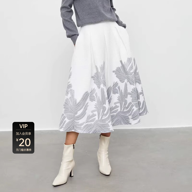 sdeer圣迪奥女装 秋休闲压褶绣花撞色不规则A字伞裙S233D1101