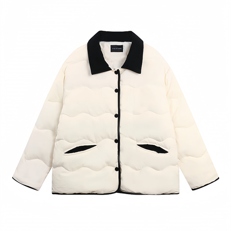 无领小个子宽松大码 新款 加厚棉服保暖棉袄 加绒菱格棉衣女时尚 短款