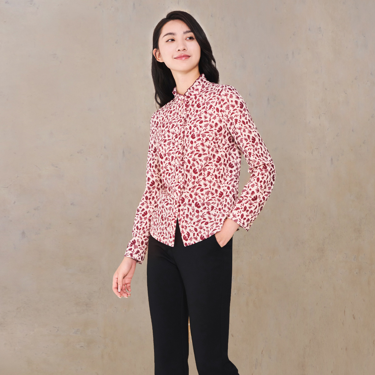 1D43A1052 优雅小碎花木耳边领口气质衬衫 歌蒂诗冬季 专柜新款