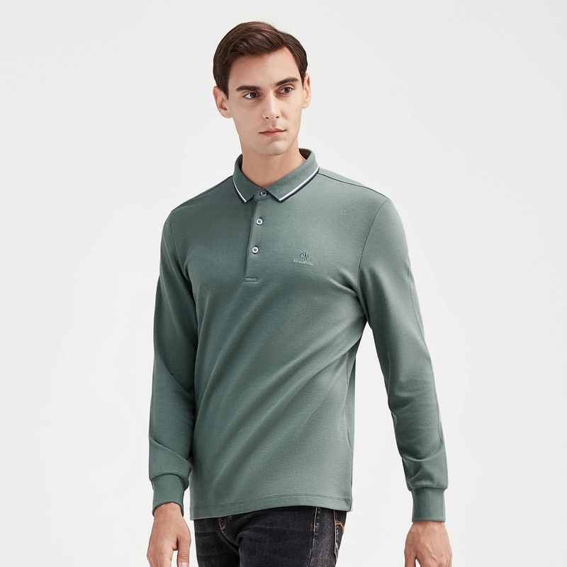 新款 男25年秋季 抑菌棉商务休闲弹力翻领T恤 POLO衫 红豆长袖