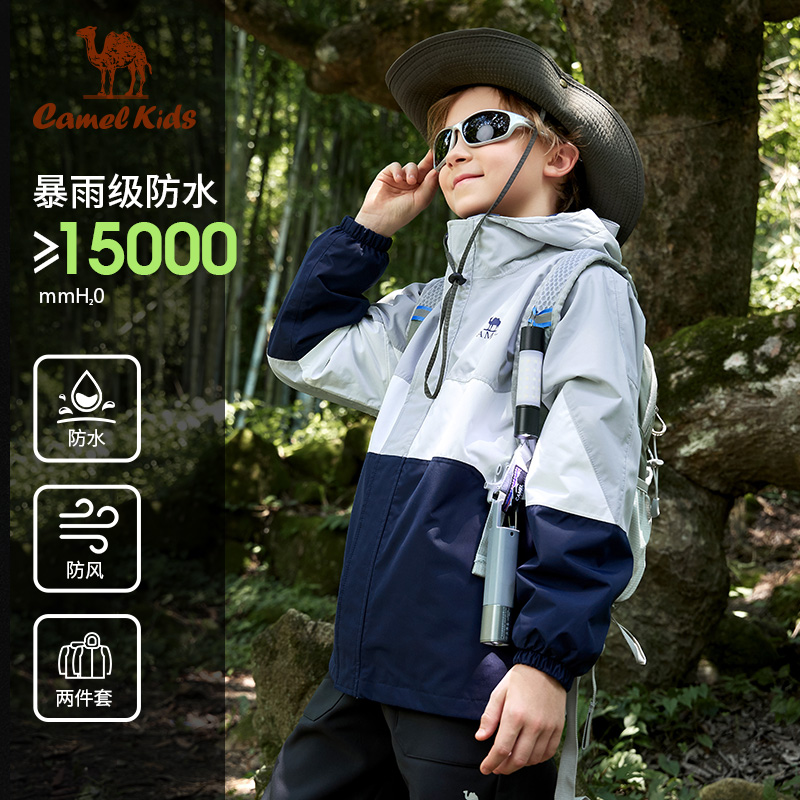 骆驼女童冲锋衣秋季 三合一抓绒男儿童防水防风户外滑雪服保暖外套