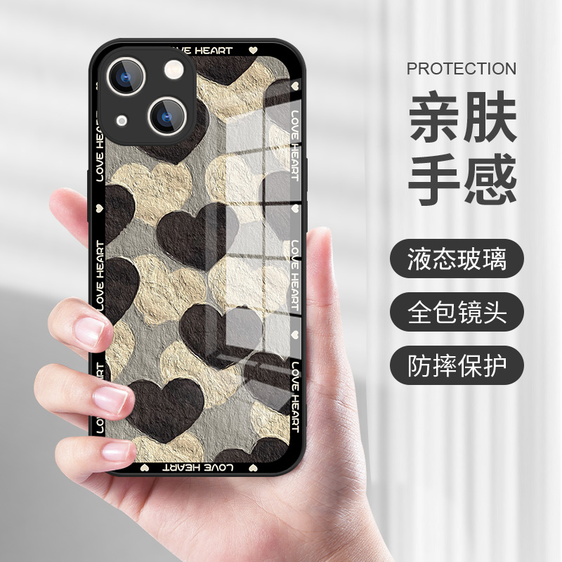 复古油画爱心iPhone16手机壳苹果17玻璃14promax新款 xs镜面xr套air 15pro高级感11小众12mini网红13少女x女款