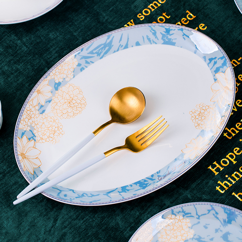 双耳鱼盘家用蒸鱼盘子2025新款 鱼碟子大号釉下彩鱼碗 高级感陶瓷装