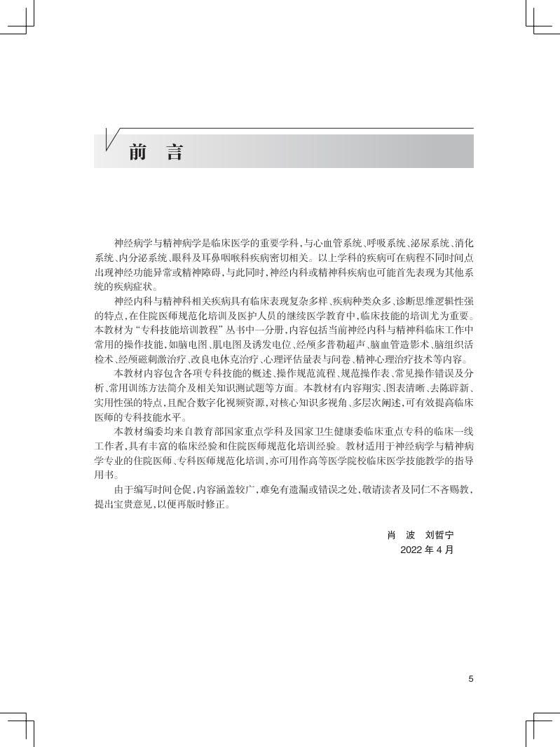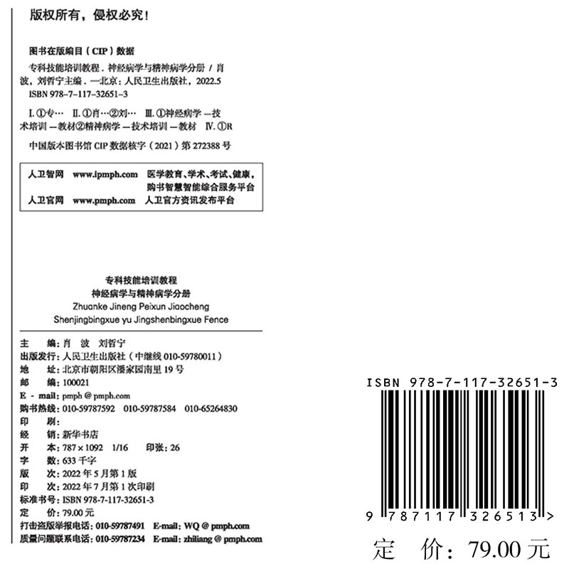 社9787117326513 配增值主编肖波刘哲宁人民卫生出版 现货专科技能培训教程 神经病学与精神病学分册创新教材