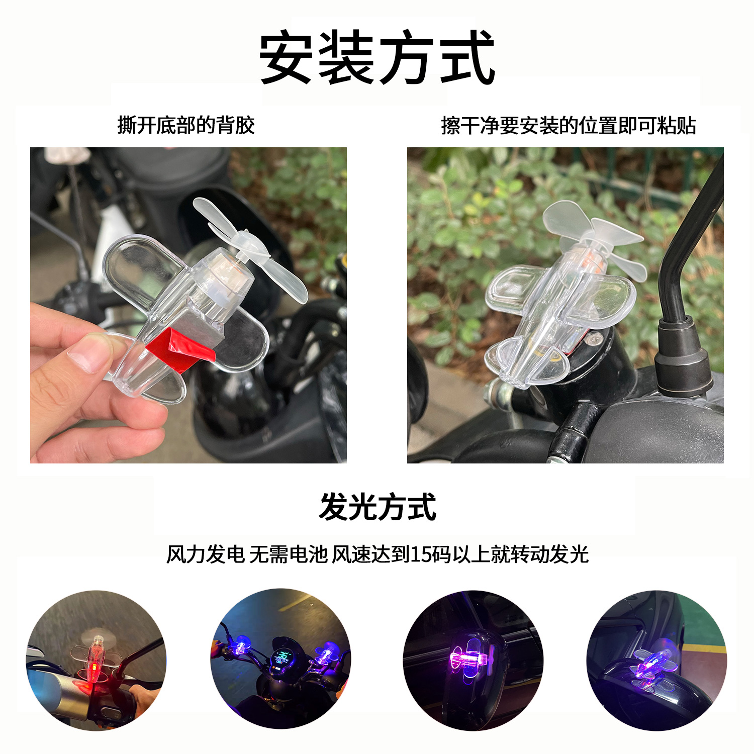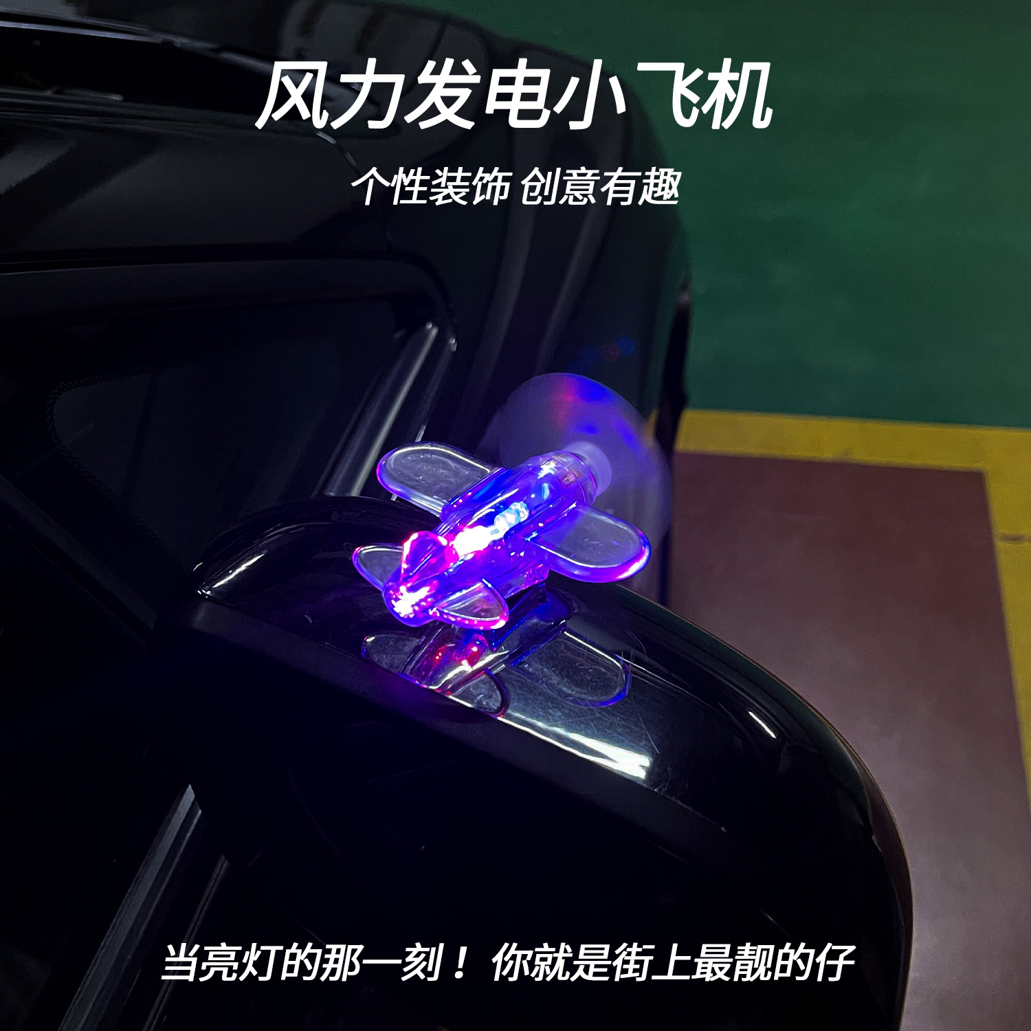 电动车摩托车风能小飞机风力发电LED亮光彩灯车载摆件装 饰品汽车
