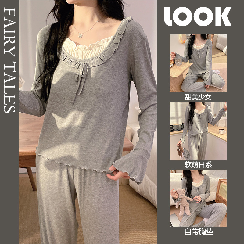 2025新款 莫代尔睡衣女春夏季 软萌日系花边套装 薄款 秋冬家居服 长袖