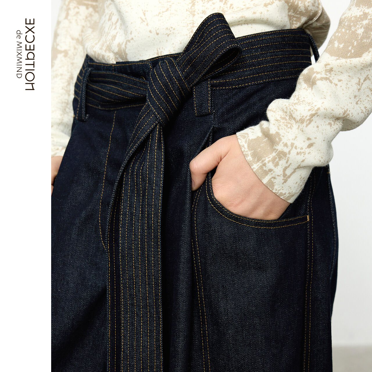 萝卜裤 EXCEPTION例外女装 简约插袋艺术腰带长裤 秋冬款 牛仔裤