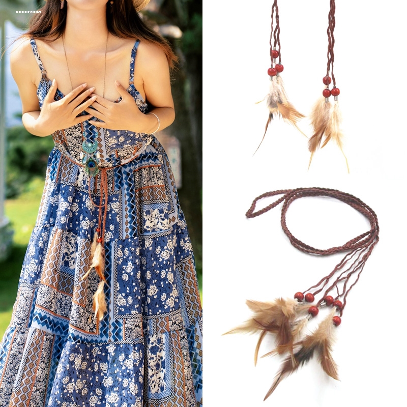 女士腰带百搭装 饰连衣裙手工编织流苏腰绳复古民族风简约打结绳子