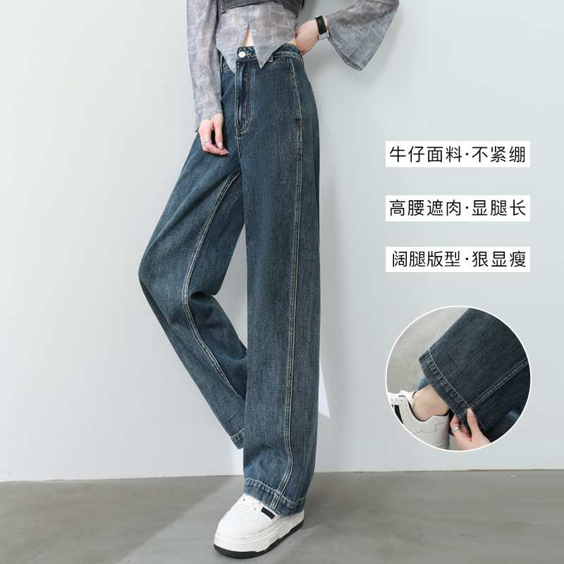 复古百搭直筒显瘦拖地裤 美式 子 女2025春秋新款 高腰宽松阔腿牛仔裤