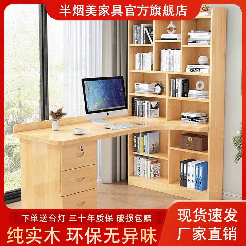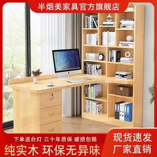 实木转角书桌书架一体组合卧室儿童学习写字桌简约台式 办公电脑桌