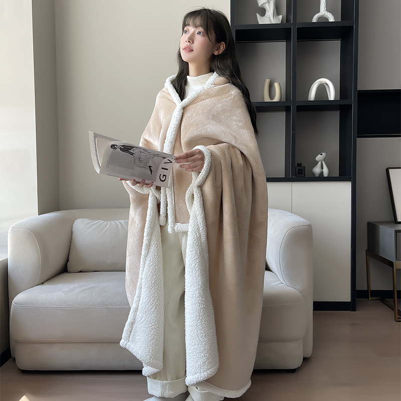 加大披肩斗篷冬季 女保暖连帽披风办公室毯子懒人毯学生午睡盖毯秋