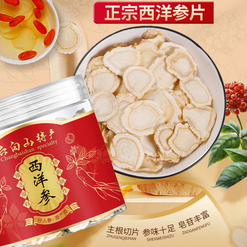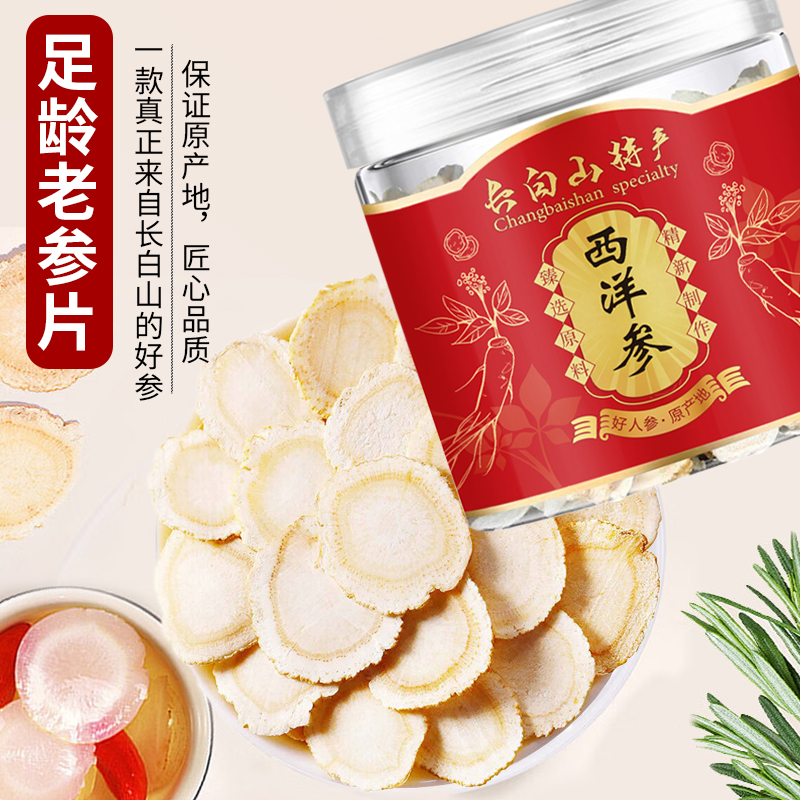正宗西洋参片含片长白山优质老参主根软质切片加大片煲汤泡水