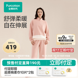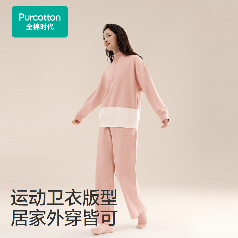可爱无领全棉柔软家居服套装 红豆居家柔柔棉春秋季 纯棉睡衣女长袖