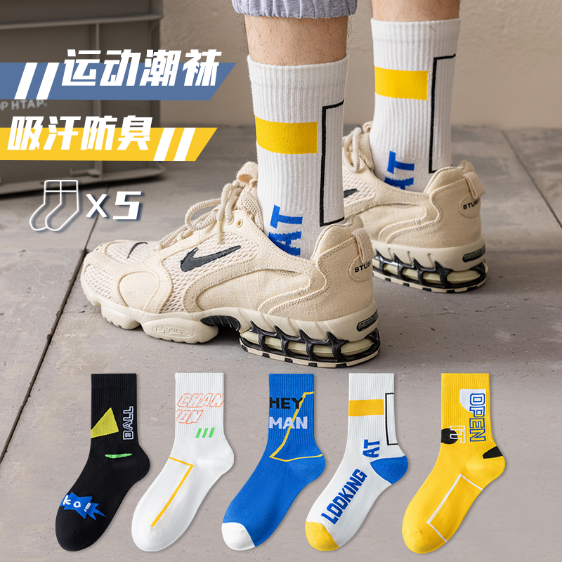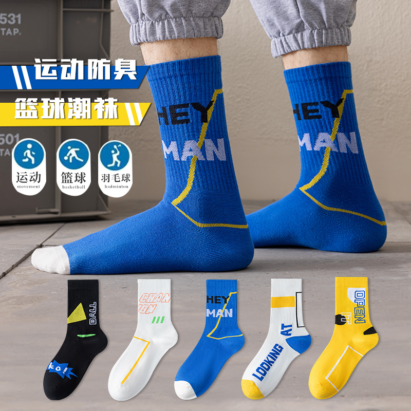 船袜 纯棉夏天短袜男士 雅鹿袜子男中筒防臭吸汗抗菌夏季 长袜薄款