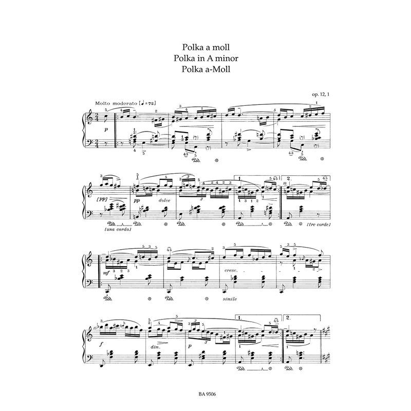 为钢琴而作 Smetana Polkas 骑熊士原版 Klavier 波尔卡 für BA09506 斯美塔纳