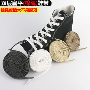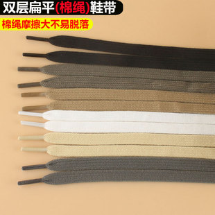 百搭小白鞋 鞋 帆布板鞋 带棕色运动鞋 带扁平棉绳适配男女通用双层鞋