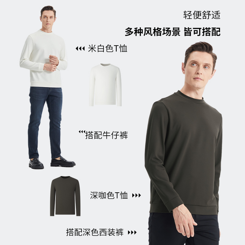 半高领打底衫 t恤男款 秋季 长袖 内搭上衣 2025新款 SHANSHAN杉杉男士