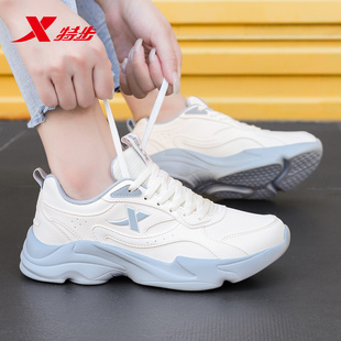 跑步鞋 官方旗舰轻便皮面运动鞋 2025新款 子休闲老爹鞋 女 鞋 特步女鞋
