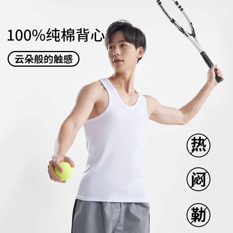 中老年人跨栏汗衫 宽松夏季 爸爸 背心纯棉内穿加大码 40支精梳棉男士