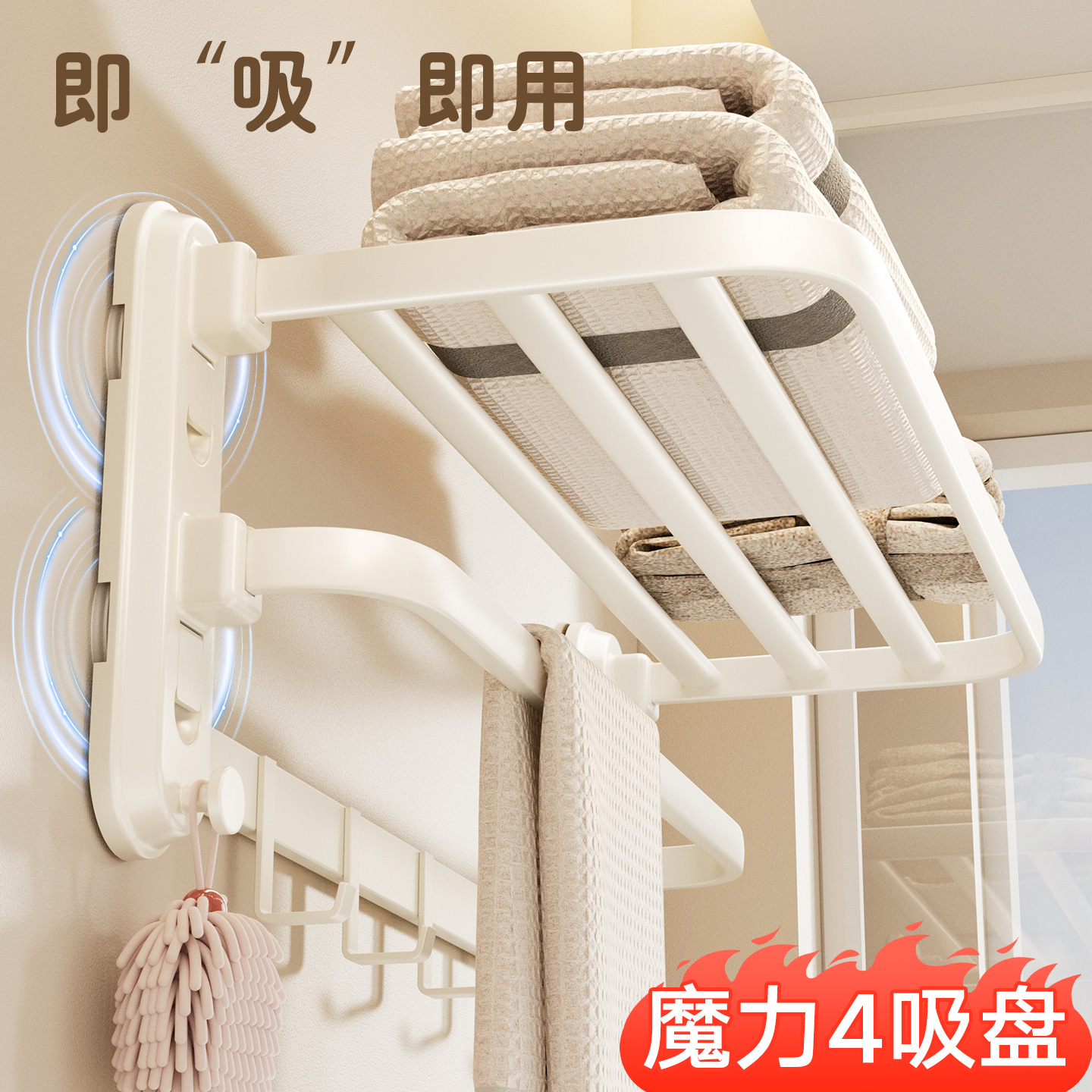 吸盘毛巾架奶油风浴巾架卫生间浴室壁挂置物架挂杆免打孔收纳架子