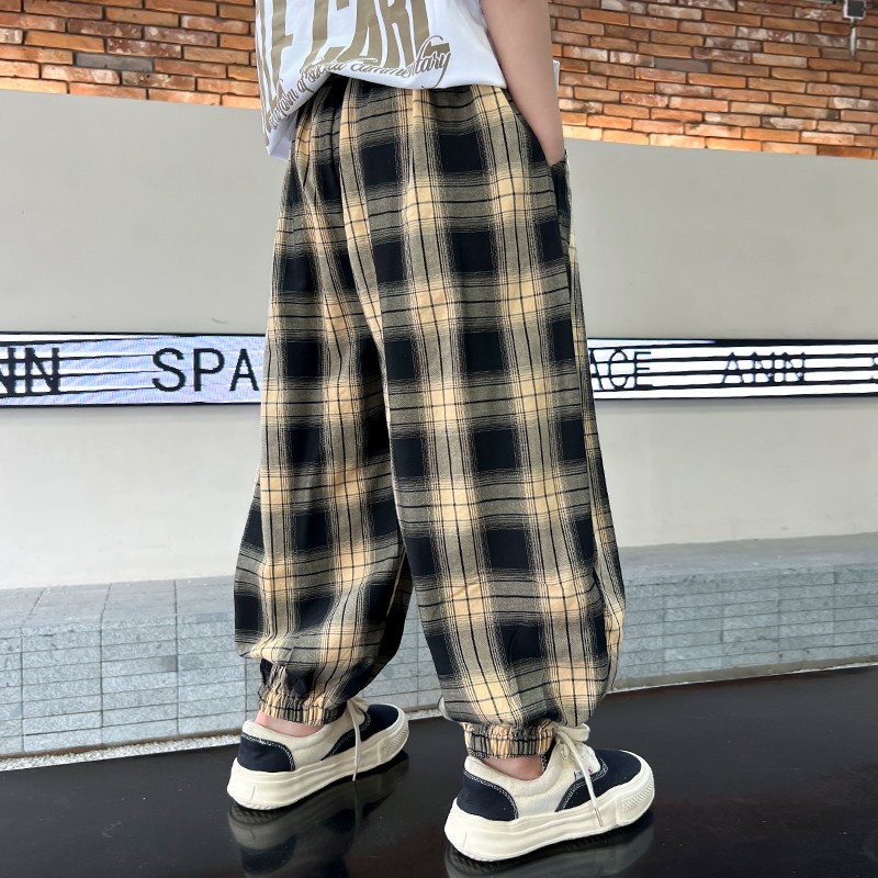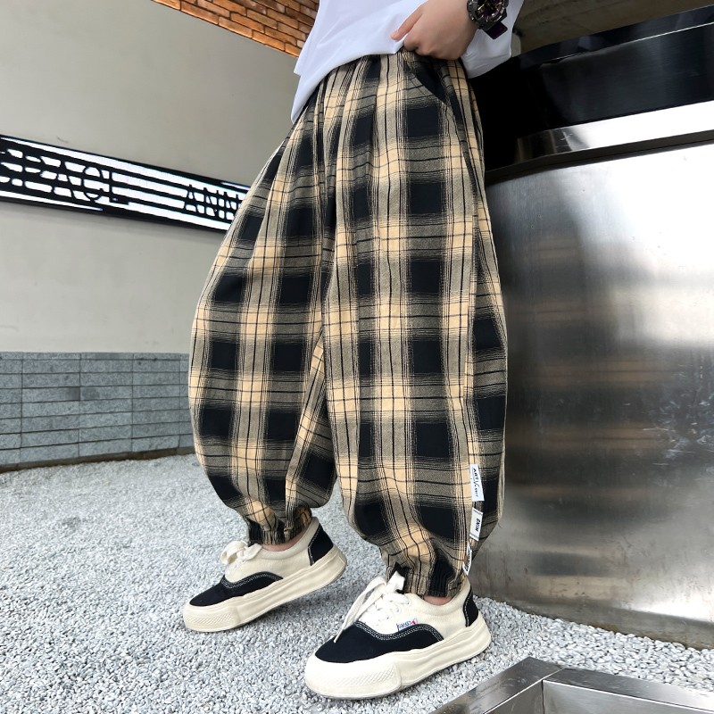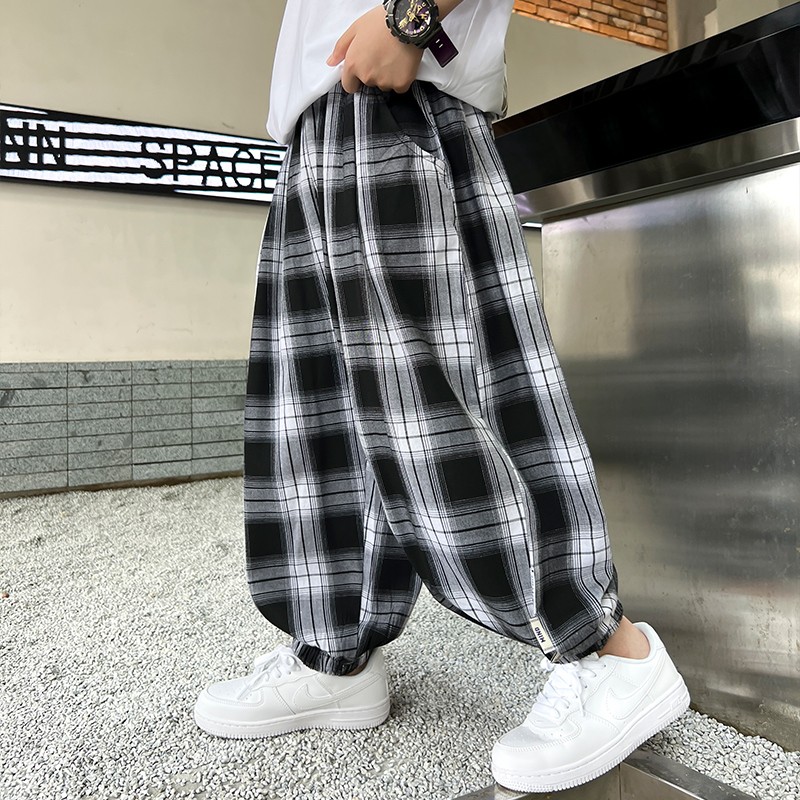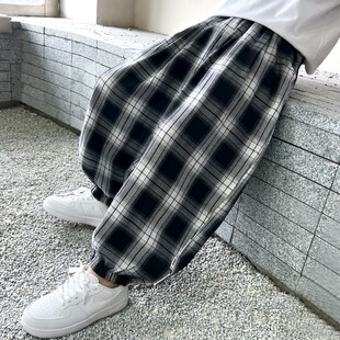 胖mm显瘦遮肉高腰垂感运动裤 大码 新款 女秋季 子 复古格子宽松阔腿裤