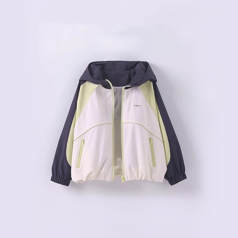女孩洋气时尚 女童冲锋衣春秋款 童装 新款 撞色儿童连帽外套 2025秋季
