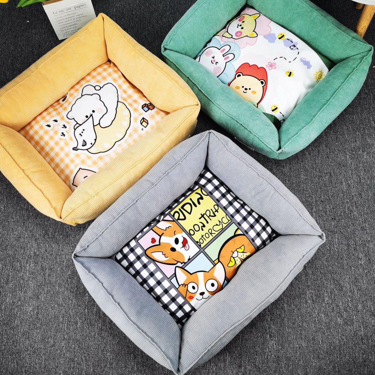 帐篷 屋 沙发 通用狗窝 ins布艺沙发方形条绒窝印花宠物棉窝四季