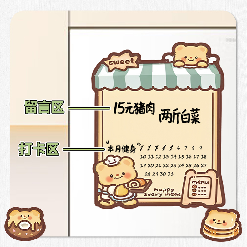 可爱卡通双开门冰箱贴网红装 饰磁贴立体磁力贴磁吸磁性贴自由DIY