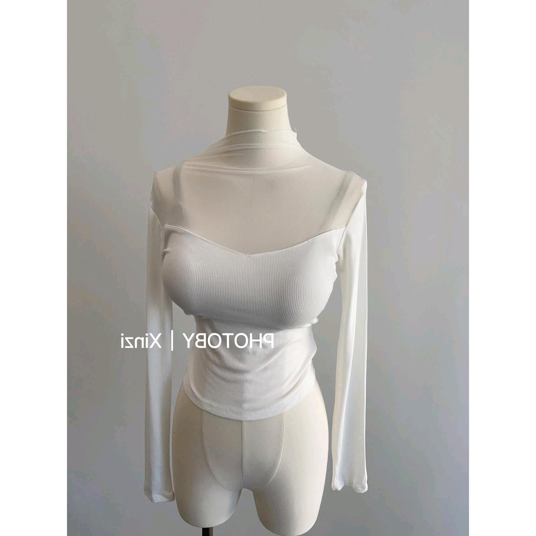 辣妹修身 打底衫 显瘦上衣 T恤女春秋内搭短款 设计感小众正肩V领长袖