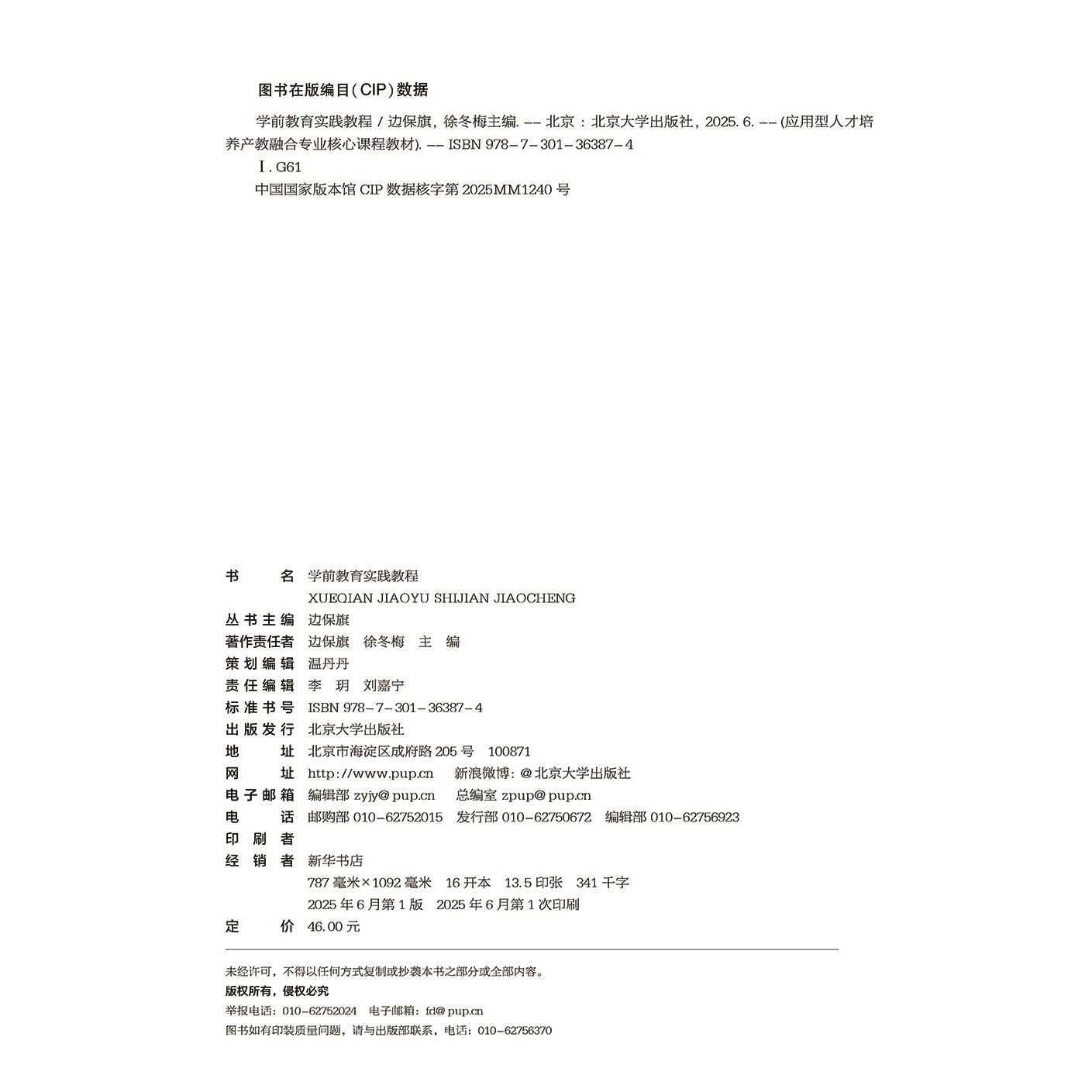 应用型人才培养产教融合专业核心课程教材·教育学系列 社 边保旗 北京大学出版 9787301363874 徐冬梅 学前教育实践教程