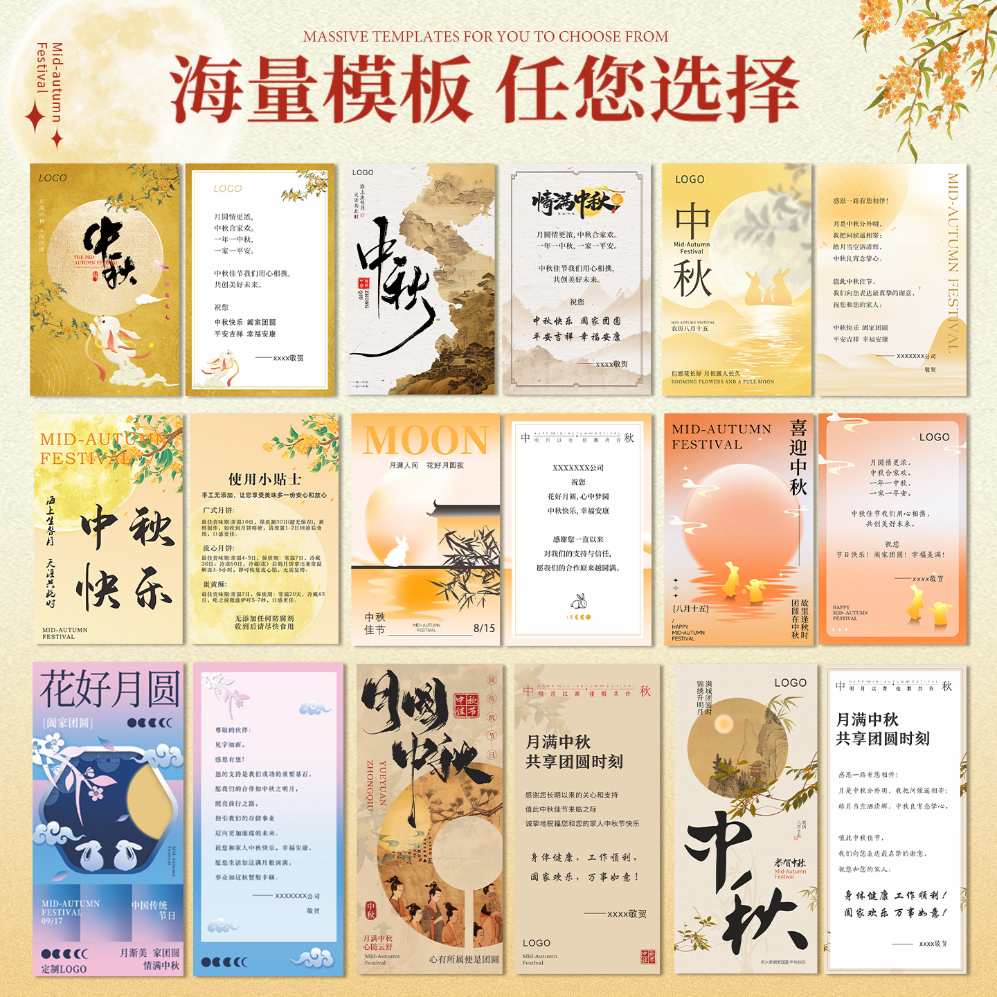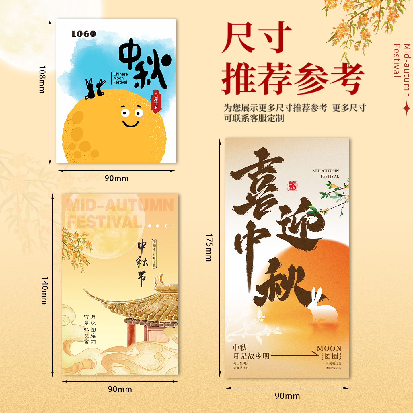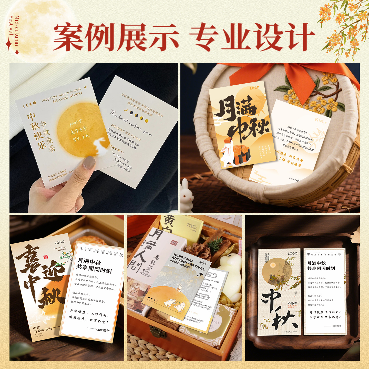 中秋节祝福卡片定制感恩感谢卡设计月饼礼盒包装 小贺卡国风花好月圆logo订做节日邀请函对折卡片产品介绍卡印