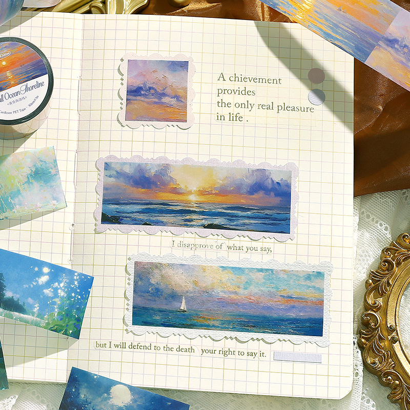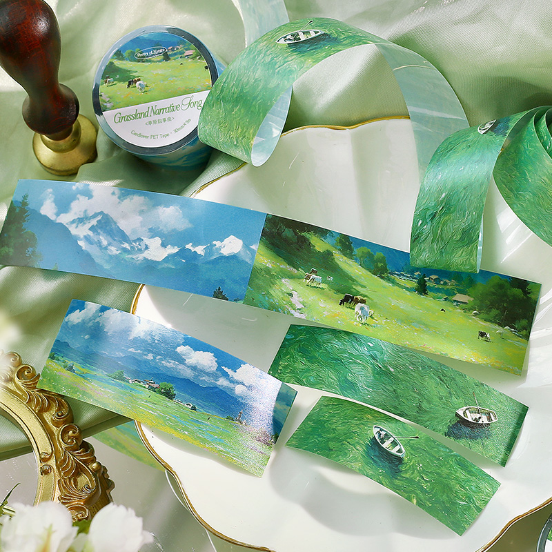 自然之诗 超长全景拉条PET胶带 轻复古浪漫印象派自然油画系列手帐胶带DIY拼贴标签素材造景贴纸 恋人 信