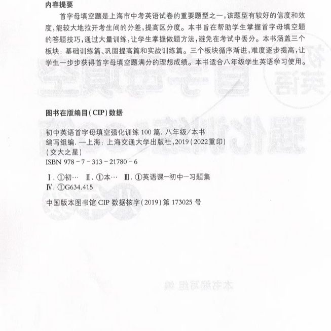 初中英语首字母填空强化训练100篇 巩固提高实战演练上海交通大学出版 8年级 初中初二英语基础训练首字母填空 社 八年级 交大之星