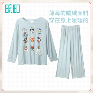 内外橙标千层绒家居服套装 NW242WL5704 半边绒保暖情侣睡衣女款