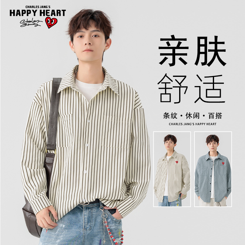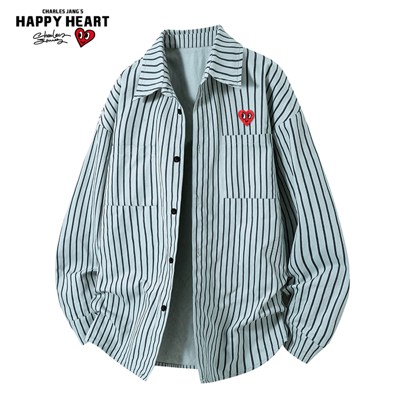 男秋高街cleanfit宽松衬衣青少年上衣 衬衫 V37美式 高级感纯白长袖
