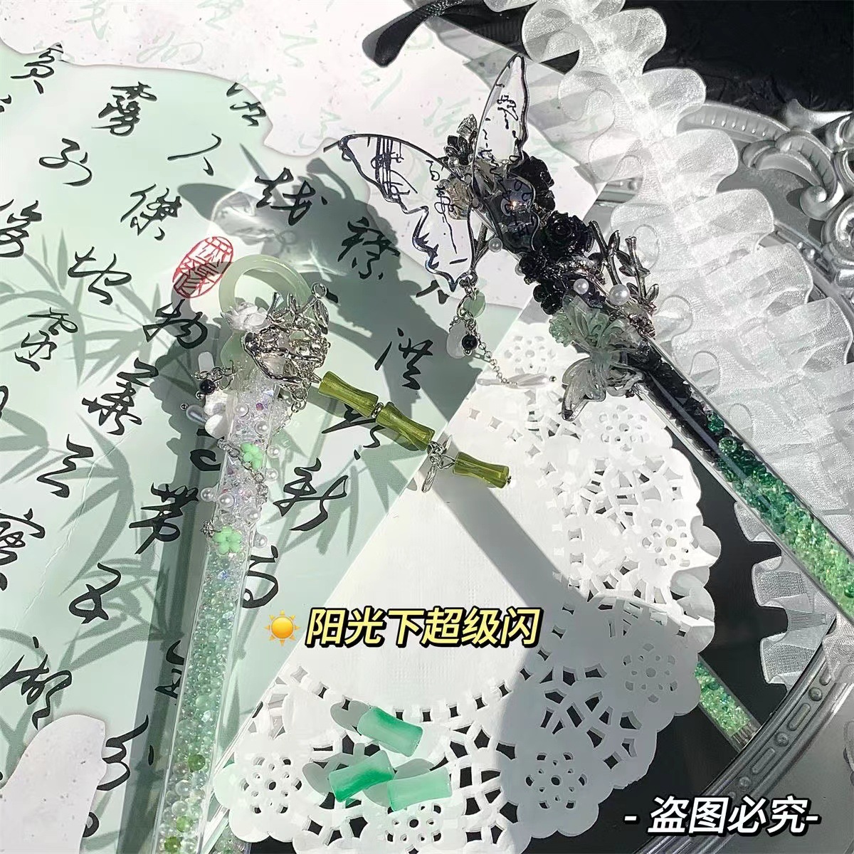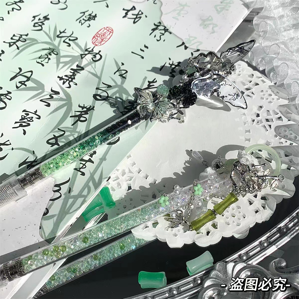 江南烟雨竹林手账原创学生手作笔刀高颜值开箱神器雕刻手工刀国风高颜值ins风流沙碎钻蝴蝶碎钻流沙笔刀手帐