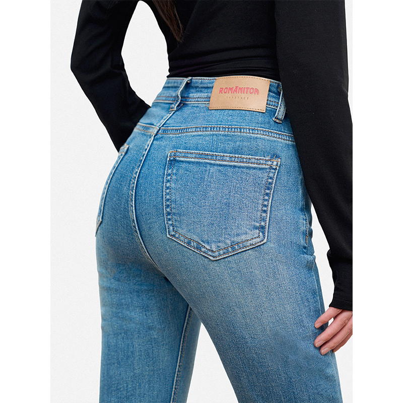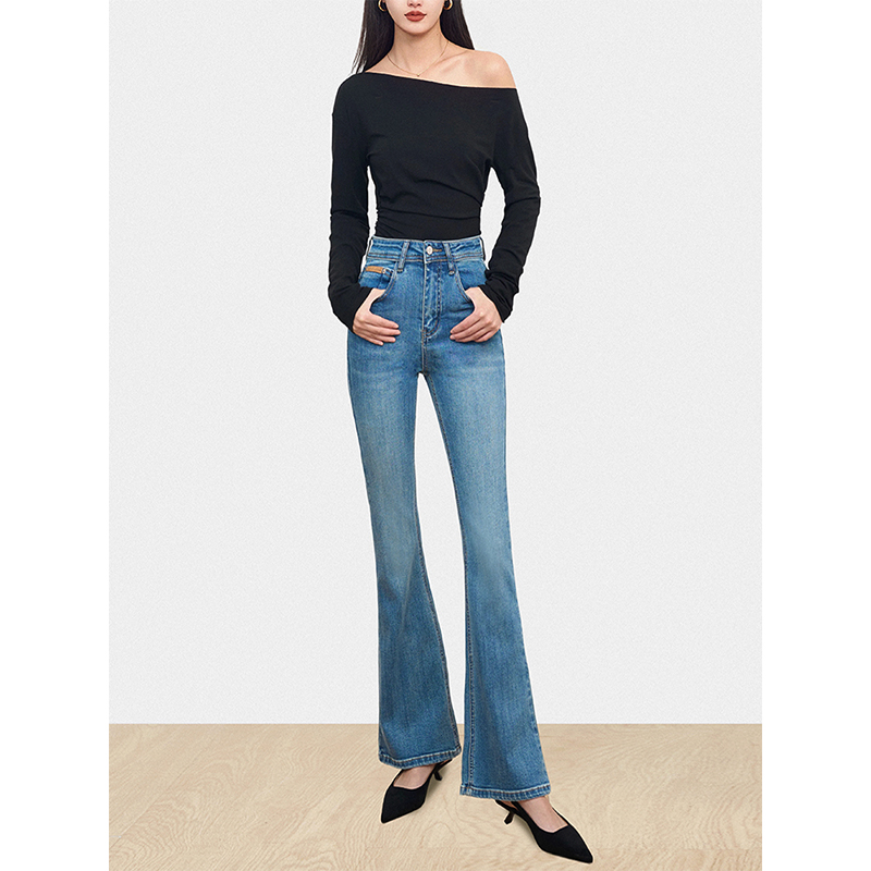 腔调 复古蓝色喇叭裤 微喇牛仔裤 显瘦新款 子 女高腰修身 SJOG法式