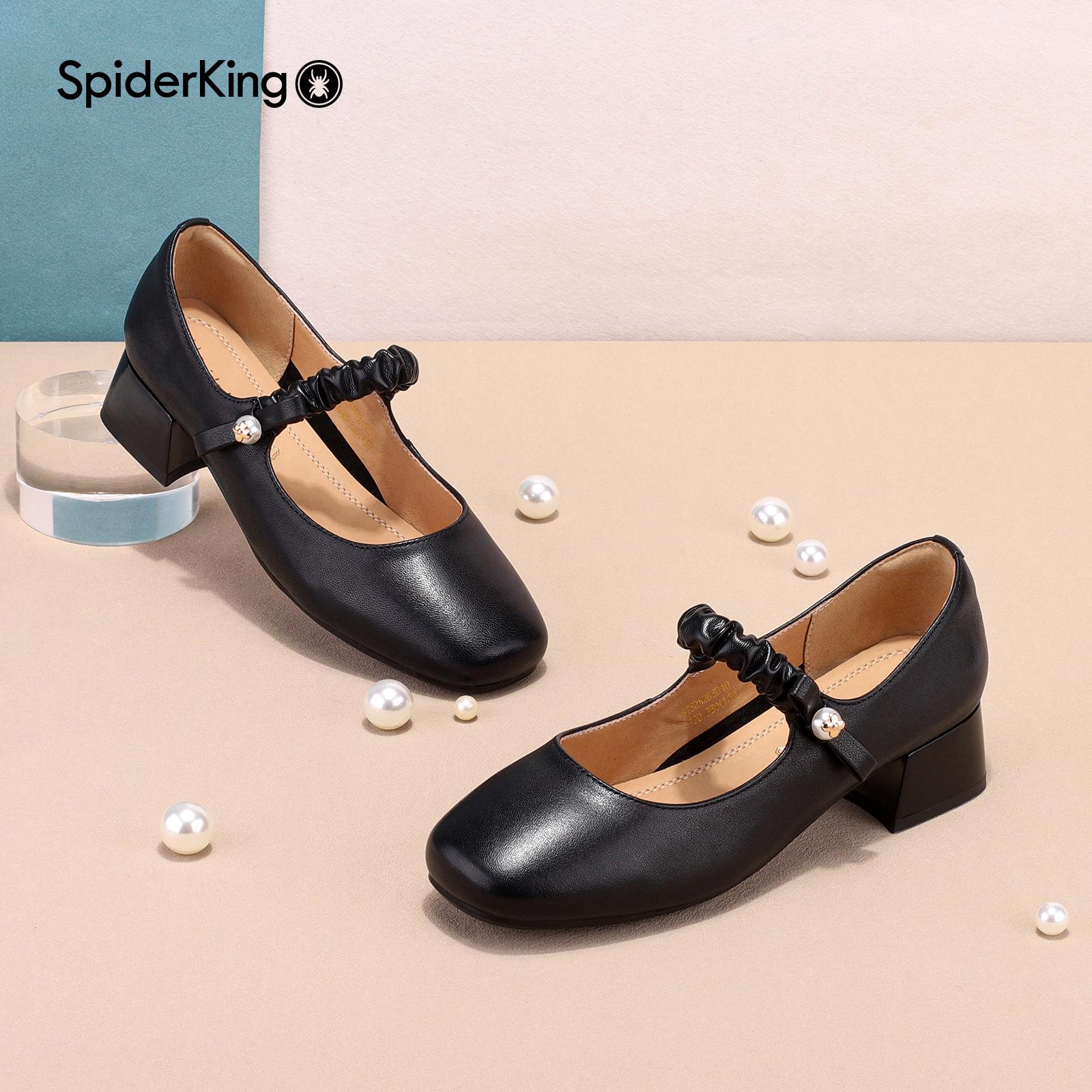 配裙子晚晚风浅口单鞋 蜘蛛王女鞋 真皮高跟鞋 女2025春季 玛丽珍鞋